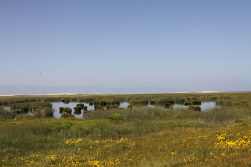 上午10時許,我們來到了此次活動的第一個目的地——小泊湖,我們將從這里開始徒步穿越牧區(qū),走近青海湖。這一路,雖然走的很累,但是周圍的風(fēng)景確實很美。我們走過了沙丘和濕地,潔白的沙地讓人有上去打個滾的沖動,而那一片隱藏在高原之上的濕地中,黃色野花點綴其間,間或有幾只鳥飛過,美麗的風(fēng)景使人忘卻了勞累。經(jīng)過大約一小時的行走后,我們終于走到了美麗的青海湖畔。在湖邊同事們做的第一件事情不是休整,而是挽起褲腳走進(jìn)青海湖,率先到達(dá)的男同事們已經(jīng)開始打起了水仗,最后抵達(dá)的人便及女同事們則淋成了落湯雞。在湖邊嬉戲、休整后,進(jìn)行了團(tuán)隊游戲環(huán)節(jié)。在游戲過程中,我們領(lǐng)會到了團(tuán)隊的力量——只有互相幫助,才能共同完成任務(wù)。