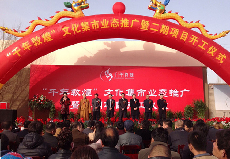參加本次開工儀式的領(lǐng)導(dǎo)和嘉賓有:敦煌市政協(xié)主席曹理、敦煌市委副書記王永宏、敦煌市政府副市長張鼐、甘肅萬華實業(yè)集團(tuán)有限公司總經(jīng)理、上海金翅鳥文化旅游發(fā)展有限公司董事長牛新偉、敦煌市月牙泉鎮(zhèn)書記宋濟(jì)民、中國建設(shè)銀行敦煌市支行行長何永斌、敦煌市佛教協(xié)會會長道證。