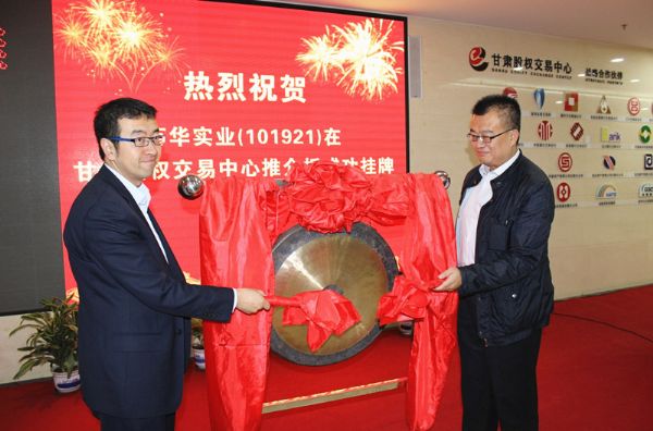 5月28日上午10時,蘭州市政府金融辦與甘肅股權交易中心戰(zhàn)略合作簽約暨蘭州企業(yè)掛牌儀式在甘肅股權交易中心正式舉行。萬華金慧總經(jīng)理施強代表甘肅萬華實業(yè)集團有限公司與蘭州銀行公司業(yè)務部總經(jīng)理盛柏涵在儀式上共同鳴鑼,萬華實業(yè)集團在甘肅股權交易中心推介板成功掛牌,掛牌名稱為:萬華實業(yè),掛牌代碼為:101921。