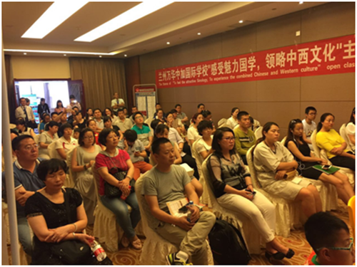為了進(jìn)一步在中加校園推進(jìn)國學(xué)教育,增強(qiáng)中加學(xué)子對國學(xué)經(jīng)典認(rèn)知和喜愛,也為廣大金城學(xué)子和家長提供一次重新體驗傳統(tǒng)文化的機(jī)會,蘭州萬華中加學(xué)校特于6月21日在白云賓館舉辦招生說明會暨以《弟子規(guī)》中的“入則孝”為主題的孝文化體驗課。上午9時,說明會在白云賓館6樓華盛頓廳準(zhǔn)時舉行,場面相當(dāng)熱烈。