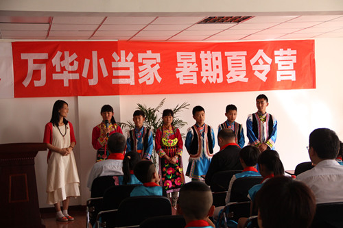 7月13日下午陽(yáng)光明媚,孩子們期待已久的“萬(wàn)華小當(dāng)家”暑期夏令營(yíng)活動(dòng)終于開(kāi)營(yíng)了。萬(wàn)華集團(tuán)總經(jīng)理牛新偉、集團(tuán)董事會(huì)辦公室主任陳永華、慧華榮光總經(jīng)理姚生艷、青海金鷹和青海金易達(dá)總經(jīng)理席望、華嚴(yán)文化總經(jīng)理羅永中等領(lǐng)導(dǎo)和嘉賓共同出席當(dāng)日下午4時(shí)舉辦的開(kāi)營(yíng)儀式。在開(kāi)營(yíng)儀式上,小水滴直臺(tái)羌寨小當(dāng)家體驗(yàn)營(yíng)張莉老師帶著與她一起遠(yuǎn)到而來(lái)的6位小當(dāng)家助教首次與大家見(jiàn)面。來(lái)自萬(wàn)華集團(tuán)員工及親友子女代表團(tuán)的30名孩子開(kāi)始了他們別樣的小當(dāng)家夏令營(yíng)生活體驗(yàn)。