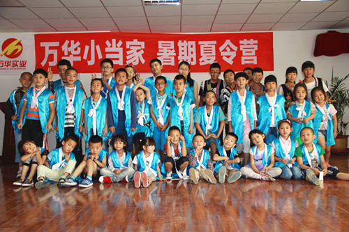 華嚴(yán)文化的義工老師為孩子們安顧好床位,下午4時(shí)整,開(kāi)營(yíng)儀式正式舉行。萬(wàn)華集團(tuán)總經(jīng)理牛新偉致辭表示,感謝華嚴(yán)文化的羅老師和“小水滴”體驗(yàn)營(yíng)張莉老師!霸趦晌焕蠋煹娜椭拢俪闪吮酒谙牧顮I(yíng)的順利舉辦。張老師和羅老師多年來(lái)致力于弘揚(yáng)優(yōu)秀的民族本土文化,并通過(guò)長(zhǎng)期堅(jiān)持不懈的實(shí)踐,獲取了非常寶貴的經(jīng)驗(yàn),是可敬的人。城市里長(zhǎng)大的孩子重學(xué)習(xí),輕自理,生活實(shí)踐很少,不懂得分擔(dān),希望通過(guò)‘萬(wàn)華小當(dāng)家’夏令營(yíng)的舉辦,讓萬(wàn)華的孩子從小當(dāng)家課程的學(xué)習(xí)體驗(yàn)開(kāi)始,從小當(dāng)家最終做到大當(dāng)家!”