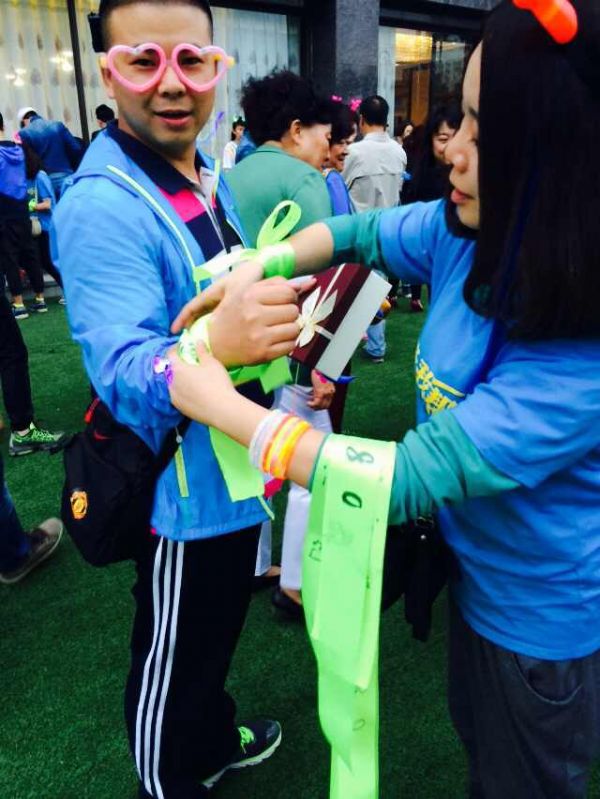 為體現(xiàn)本次活動(dòng)健康、快樂、充滿活力的奔跑主題,16580為參與者準(zhǔn)備了寫有“一路我?guī)湍?6580”字樣的綠絲帶。