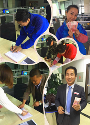 為了使員工的父母能夠在重陽節(jié)當(dāng)天感受到企業(yè)和工會(huì)的關(guān)愛, 9月21日重陽節(jié)當(dāng)天下午,工會(huì)工作人員專程前往集團(tuán),將慰問金發(fā)放到每一位員工的手上!斑@是工會(huì)專門為老人家準(zhǔn)備的福利,請大家轉(zhuǎn)達(dá)工會(huì)對老人的祝福,把錢送到父母的手中!惫ぷ魅藛T不時(shí)跟大家說明。一位員工領(lǐng)完慰問金后非常感慨地說道:“我的老父親今年已經(jīng)72歲了,我這就打個(gè)電話給他們,說我的單位給他們發(fā)錢了!”另一位員工說“逢年過節(jié)的時(shí)候,單位都給我們發(fā)福利,但是給父母發(fā)福利的,我這還是頭一回領(lǐng),真的很感謝你們!”