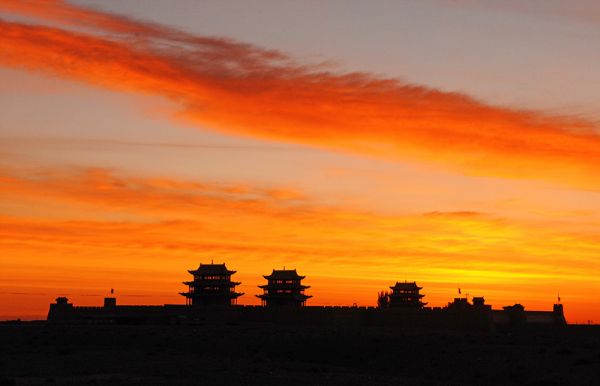 天色明凈蔚藍,群山蒼翠綿延,尕海湖的靛青湖水與碧綠湖邊草,晨間血色日暉與雄關逆光剪影,鏡頭里的甘肅清透中浸染著一股遒勁。