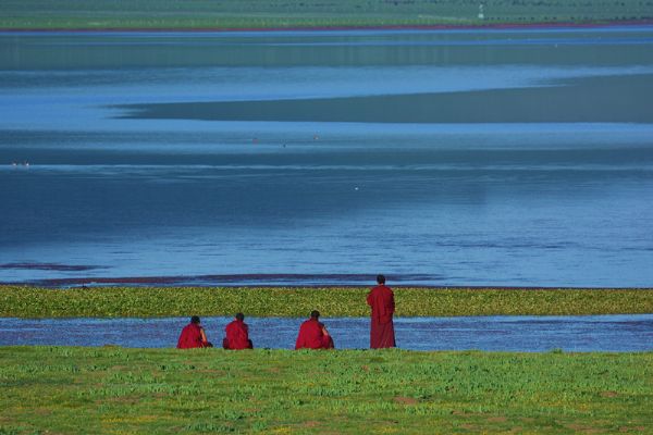 皚皚白雪蓋不住的紅色樓閣,廣袤山坡上零星點綴的五色帳篷,圣海湖邊身著僧伽的佛教弟子,每一個鏡頭,都影刻著拍攝者對于人文的傾心,對于自然的禮贊,也讓蒼茫之外的甘肅。