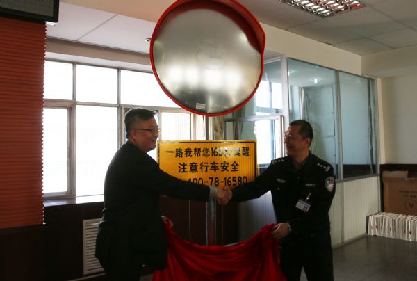 在一片祥和的氣氛中蘭州市交警支隊(duì)副支隊(duì)長(zhǎng)徐剛與萬(wàn)華金慧科技股份有限公司總經(jīng)理施強(qiáng)共同揭牌,祝愿本次公益活動(dòng)順利開展。