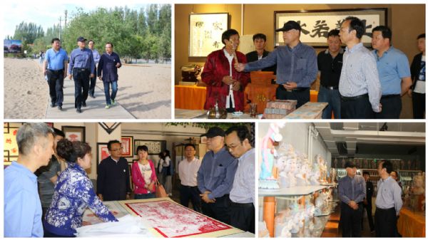 敦煌千年古城開發(fā)有限公司總經(jīng)理助理魏旭和游客中心主任白皛全程陪同并熱情接待?偨(jīng)理助理魏旭對千年敦煌項目整體進行了講解和匯報。文化部文化市場司副巡視員劉魯平、國家旅游局監(jiān)管司調(diào)研員涂衛(wèi)東等領(lǐng)導(dǎo)對千年敦煌項目表示出極大興趣,并對月牙泉小鎮(zhèn)文創(chuàng)樓和敦煌特色一條街進行了實地考察。