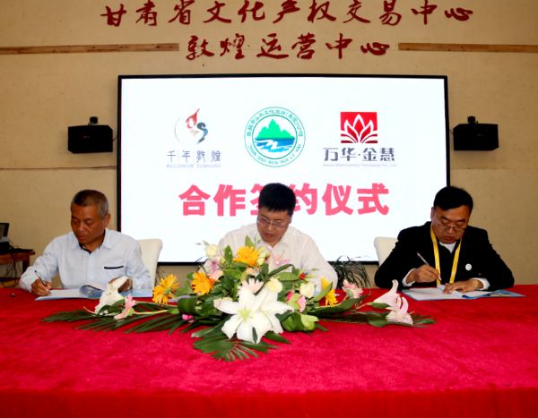 9月21日,千年敦煌、張掖山水集團(tuán)和萬華金慧三方合作協(xié)議簽約儀式在月牙泉小鎮(zhèn)的甘肅省文化產(chǎn)權(quán)交易中心敦煌運營中心正式舉行。敦煌千年古城開發(fā)有限公司董事長牛新偉、張掖市山水文體旅游集團(tuán)有限公司副總經(jīng)理董振強、甘肅萬華實業(yè)集團(tuán)有限公司副總經(jīng)理宿曉中出席本次簽約儀式。