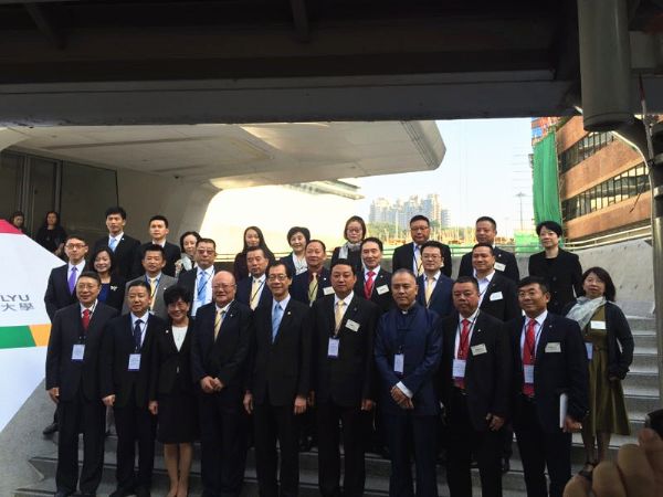 香港理工大學(xué)校董會主席陳子政先生與香港理工大學(xué)校長唐偉章教授為牛新民董事長頒獎并合影。