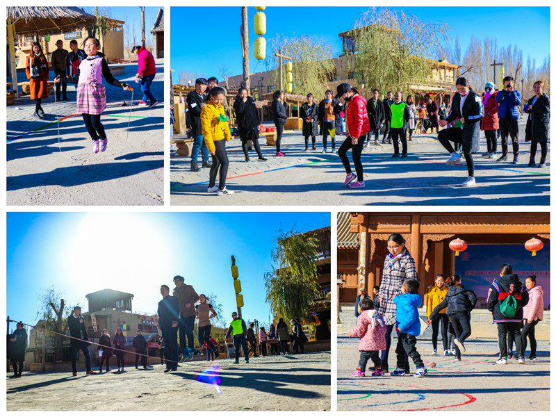 11月25日至26日下午,由千年敦煌·月牙泉小鎮(zhèn)主辦的第三屆冬季民間趣味游戲聯(lián)賽在景區(qū)中心街舉行。踢毽子、跳大繩、丟沙包、運球比賽、跳方格、拔河等一系列有趣、互動的文體競賽項目異彩紛呈。比賽項目吸引了數(shù)百名來自敦煌周邊市民及敦煌西北師范大學的師生們踴躍參與。