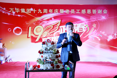 12月12日17時(shí)30分,“萬華集團(tuán)十九周年慶暨老員工感恩答謝會(huì)”在甘肅互聯(lián)網(wǎng)創(chuàng)新創(chuàng)業(yè)大廈配屬餐廳如期舉行。萬華集團(tuán)董事長牛新民、總經(jīng)理牛新偉、高級(jí)顧問劉運(yùn)利、集團(tuán)各職能部門和下屬各公司高管與120余名萬華老員工們歡聚一堂,感恩互謝,共敘情誼。