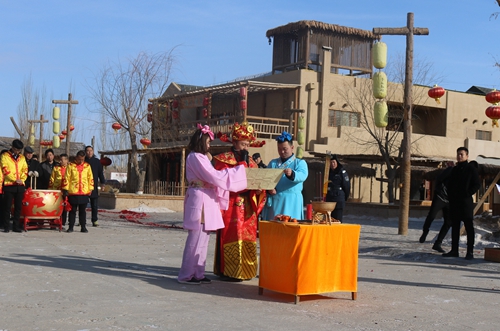 正月初五,千年敦煌·月牙泉小鎮(zhèn)舉行了圍繞財神文化為主題的一系列慶春祈福活動,為當?shù)匕傩蘸屯獾赜慰统仕土霜毦唢L(fēng)味的年俗大餐。
