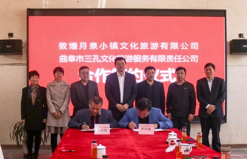 在熱烈友好的氣氛中,牛新偉代表公司與曲阜市三孔文化旅游服務(wù)有限責(zé)任公司董事長尹洪福簽訂了《旅游合作意向書》。尹洪福熱情邀請敦煌月泉小鎮(zhèn)文化旅游有限公司到曲阜市考察交流,相互間建立起長期聯(lián)絡(luò)機制,加強雙方在文化、旅游等領(lǐng)域的密切合作。牛新偉表示,兩地文化旅游資源豐厚,希望通過此次實地考察座談,加深了解,增進友誼,優(yōu)勢互補,加強兩地公司之間的交流與合作,全面提升雙方的旅游品牌影響力,力求達到互利共贏的目的。