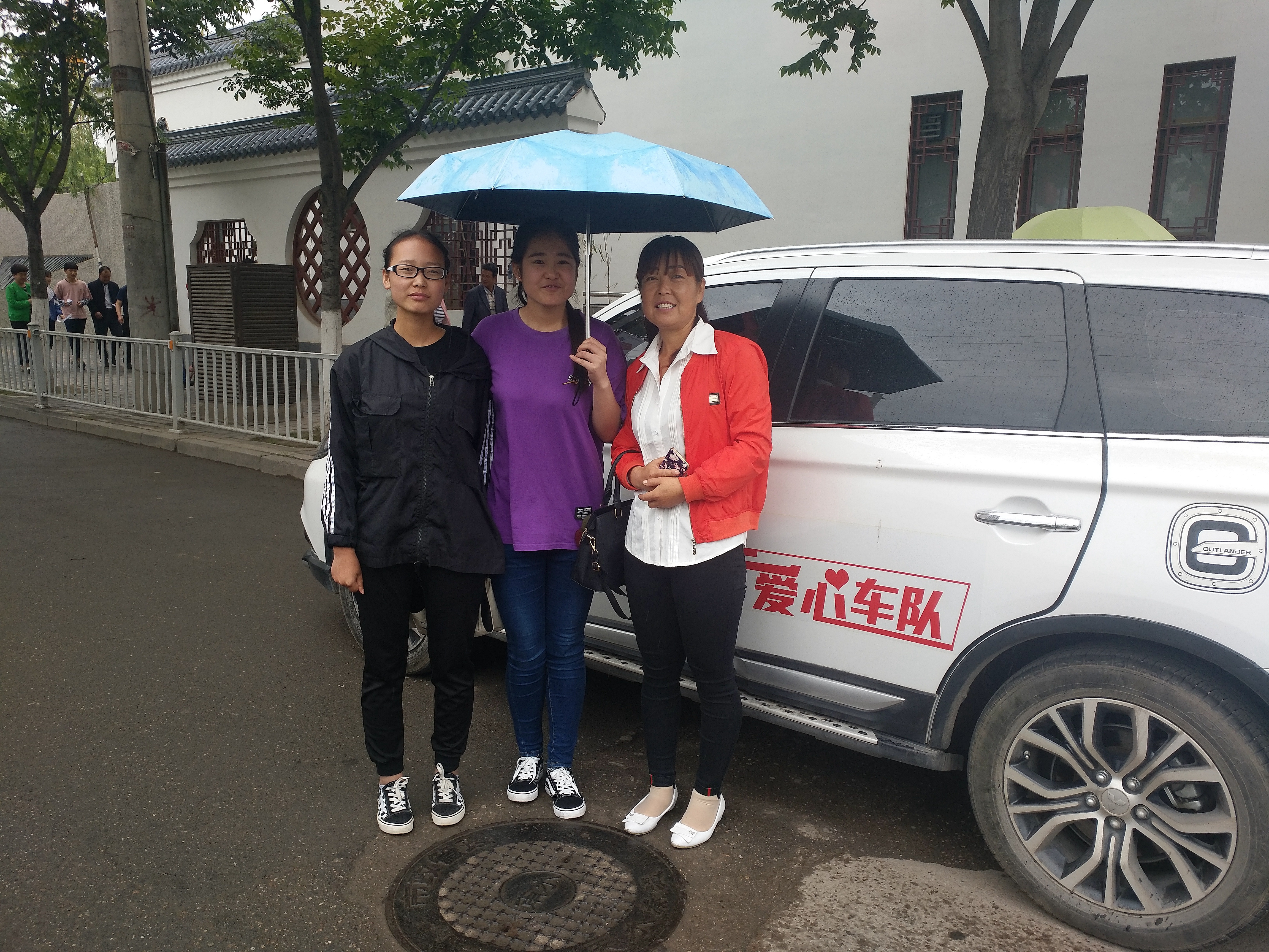 中午12時(shí),天空下著小雨,在天水市一中、二中門口,愛心送考車整齊地停在學(xué)校門口等待考生上車。一位母親帶著兩位考生冒雨趕來,車隊(duì)司機(jī)王強(qiáng)看到后急忙下車為他們遞上雨傘。王強(qiáng)還向家長們介紹,高考期間,天水勝華愛心送考車會(huì)在城區(qū)考點(diǎn)待命,風(fēng)雨無阻接送參加高考的學(xué)生。
