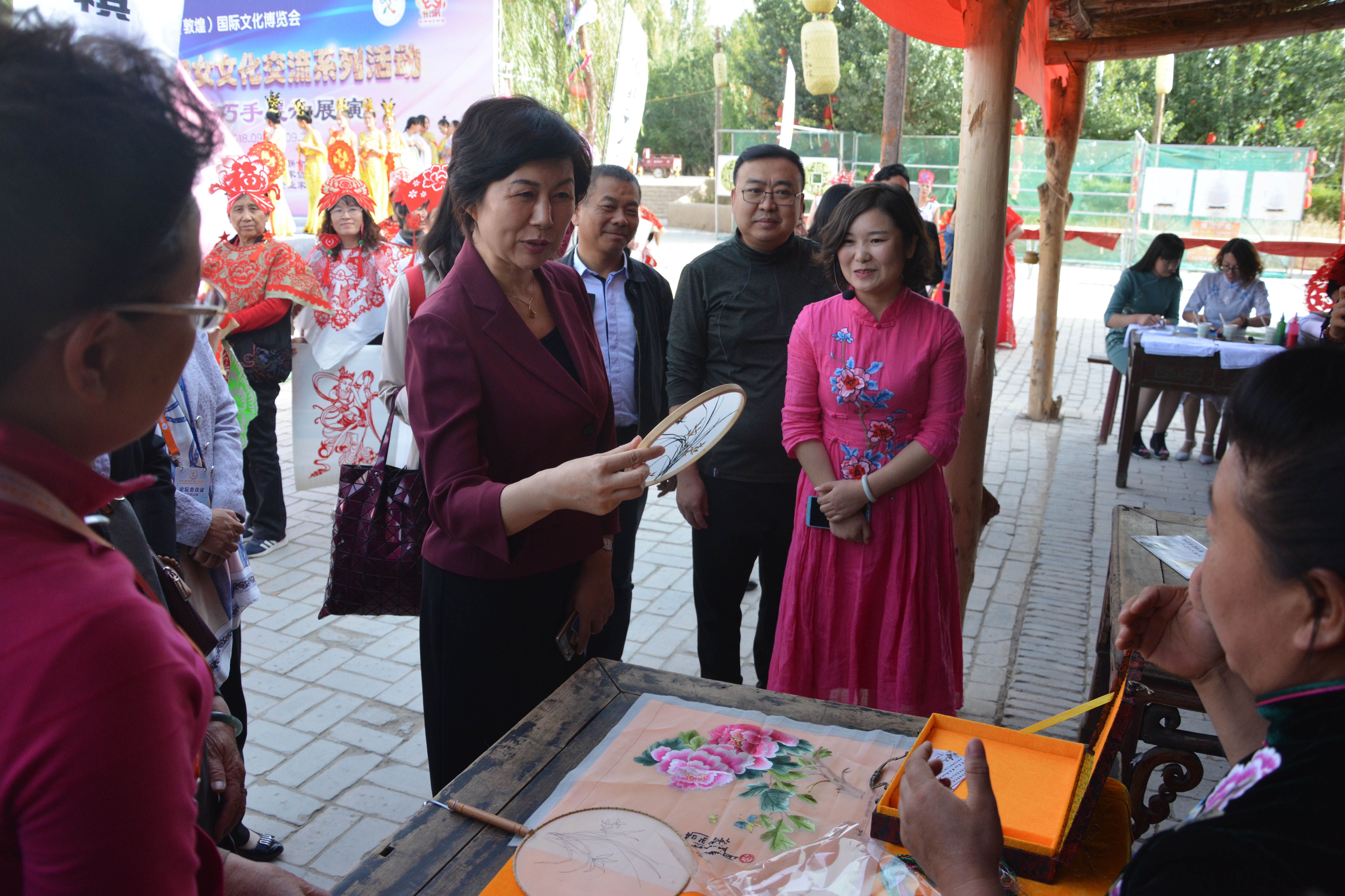 9月26日下午4時(shí),甘肅省婦聯(lián)黨組書記、主席周麗寧一行來(lái)到月牙泉小鎮(zhèn),視察景區(qū)中心街正在舉行的“首屆婦女文化交流系列活動(dòng)——隴原巧手展示展演”,認(rèn)真觀摩了來(lái)自全國(guó)各地手工編織界的業(yè)內(nèi)人士及“巧手們”的指尖技藝。甘肅萬(wàn)華實(shí)業(yè)集團(tuán)總經(jīng)理、敦煌千年古城文化發(fā)展有限公司董事長(zhǎng)牛新偉,甘肅萬(wàn)華實(shí)業(yè)集團(tuán)副總經(jīng)理宿曉中陪同考察。