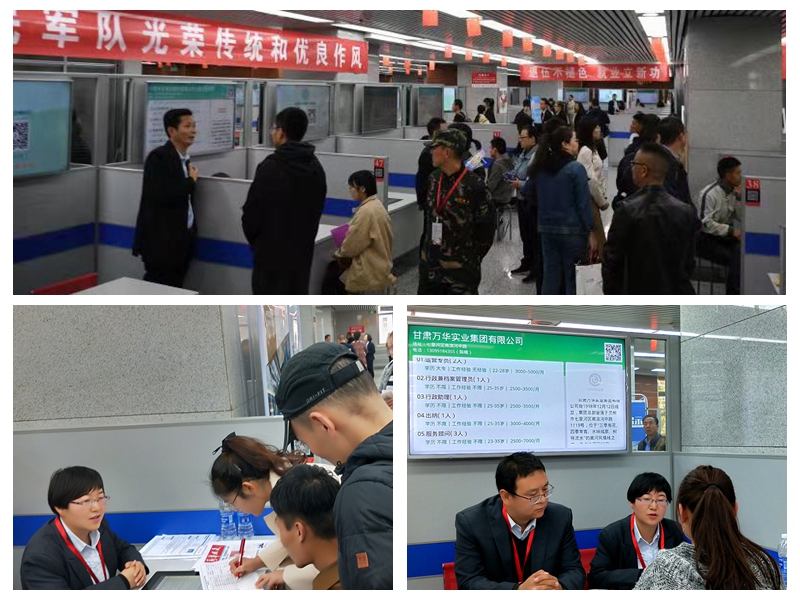 10月27日,甘肅省退役軍人事務廳聯(lián)合省人力資源和社會保障廳舉辦甘肅省2019年秋季退役軍人暨現(xiàn)役軍人家屬就業(yè)大型專場招聘會。甘肅萬華實業(yè)集團有限公司及旗下甘肅雙創(chuàng)互聯(lián)網(wǎng)科技有限公司、甘肅萬華職業(yè)培訓學校積極參加,為退役軍人和軍屬提供行政助理、前臺客服、運營專員等十余個重要崗位,收集意向簡歷70余份。