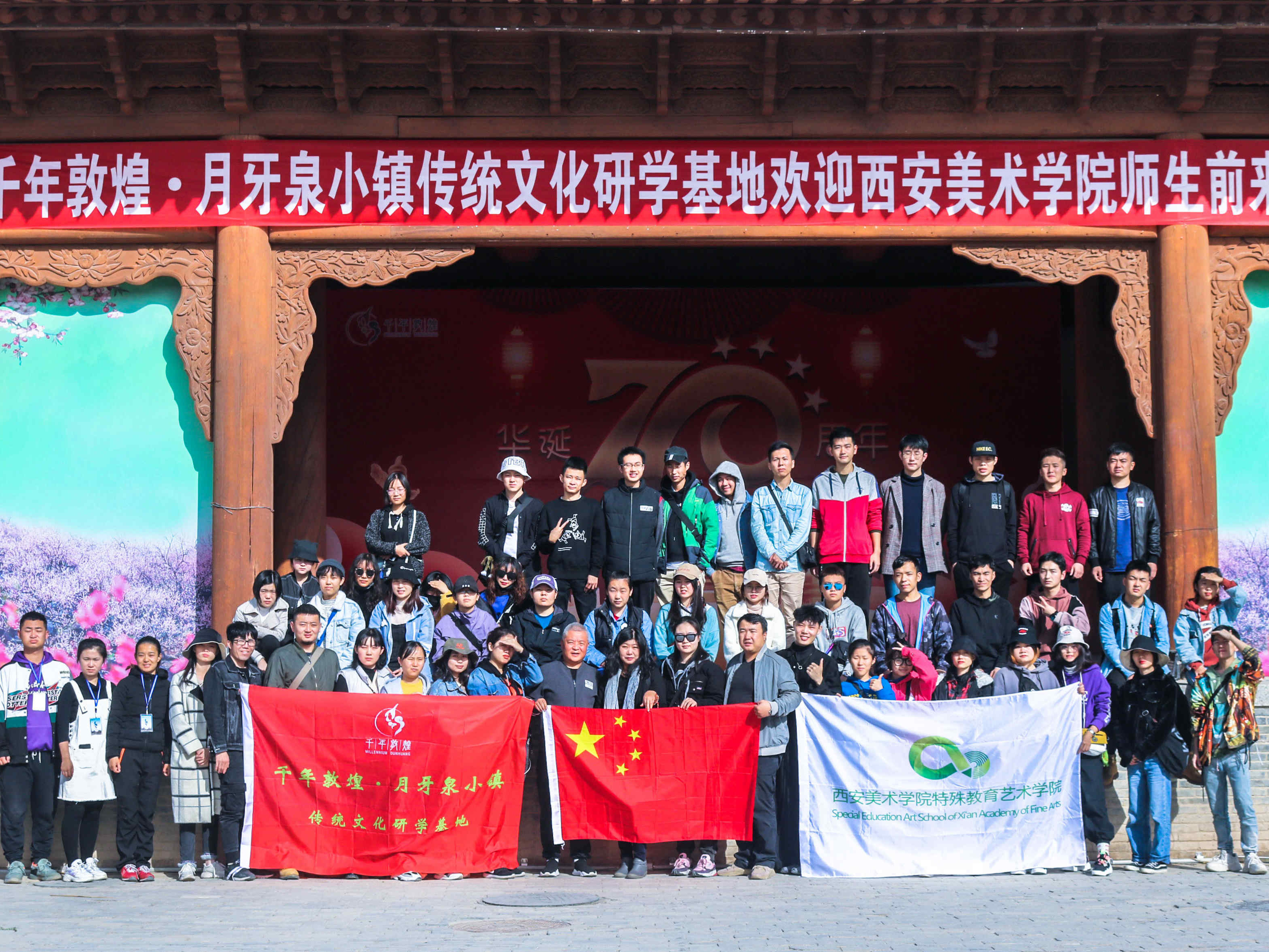 10月10日,西安美術(shù)學(xué)院特殊教育藝術(shù)學(xué)院研學(xué)團(tuán)走進(jìn)千年敦煌·月牙泉小鎮(zhèn)傳統(tǒng)文化研學(xué)基地,師生一行48人在景區(qū)議堂學(xué)習(xí)歷史人文,感受敦煌不朽魅力。