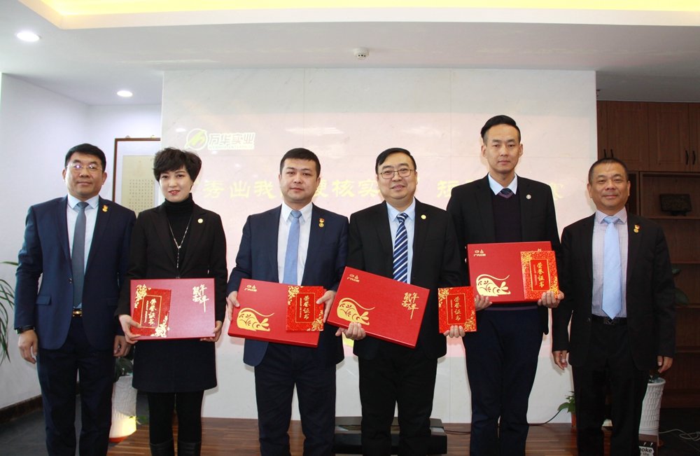 甘肅雙創(chuàng)常務(wù)副總經(jīng)理孫飛虎為新晉司齡5年和10年老員工授勛并合影