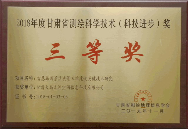 會上,甘肅省測繪地理信息學(xué)會理事長王有弢宣讀了甘肅省測繪地理信息學(xué)會“2018年度科學(xué)技術(shù)獎”獎勵的決定。由大禹九洲參評的“智慧旅游景區(qū)實景三維建設(shè)關(guān)鍵技術(shù)研究”項目榮獲2018年度甘肅省測繪科學(xué)技術(shù)(科技進(jìn)步)三等獎,“S28平?jīng)鍪徐`臺至華亭高速公路基礎(chǔ)控制測量與航測成圖測繪工程”項目榮獲2018年度甘肅省測繪科學(xué)技術(shù)(優(yōu)秀工程)金獎,“合水縣國土資源局不動產(chǎn)登記平臺建設(shè)及數(shù)據(jù)整合采購項目”榮獲2018年度甘肅省測繪科學(xué)技術(shù)(優(yōu)秀工程)銅獎。
