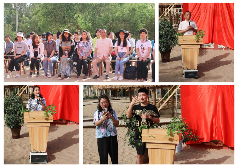 中國華夏文化遺產(chǎn)基金會千年敦煌專項(xiàng)基金管委會主任、敦煌千年古城文化發(fā)展有限公司董事長牛新偉,千年敦煌專項(xiàng)基金管委會辦公室主任陳永華,西安美術(shù)學(xué)院特殊教育藝術(shù)學(xué)院書記李玉健、老師劉肖,北京數(shù)聚智連科技股份有限公司執(zhí)行創(chuàng)意總監(jiān)李惠靜、藝術(shù)指導(dǎo)朱珠,敦煌千年古城文化發(fā)展有限公司項(xiàng)目總監(jiān)熊秀霞、經(jīng)營管理部部長郭龍等領(lǐng)導(dǎo)及嘉賓出席結(jié)營儀式,與來自西安美術(shù)學(xué)院特殊教育藝術(shù)學(xué)院的優(yōu)秀學(xué)員、研學(xué)活動工作人員、月牙泉小鎮(zhèn)商戶代表共同見證這一激動人心的時(shí)刻。