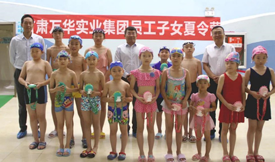 “每年的夏天,萬華集團(tuán)都會為員工的孩子們準(zhǔn)備一場生動活潑的夏令營。游泳是一項(xiàng)生存技能,也是一項(xiàng)有益身心健康的體育運(yùn)動。希望通過夏令營,小朋友們能學(xué)好游泳技能,養(yǎng)成游泳的良好習(xí)慣,在未來的成長中,把鍛煉身體、堅(jiān)守健康作為生活中一件重要的事情去堅(jiān)持。愿健康、快樂成為未來每一位小朋友乘風(fēng)破浪、勇往直前的力量源泉!迸P旅癜l(fā)表開營儀式致辭并宣布開營。隨后,牛新民為參加夏令營的小朋友們贈送了精美禮物。