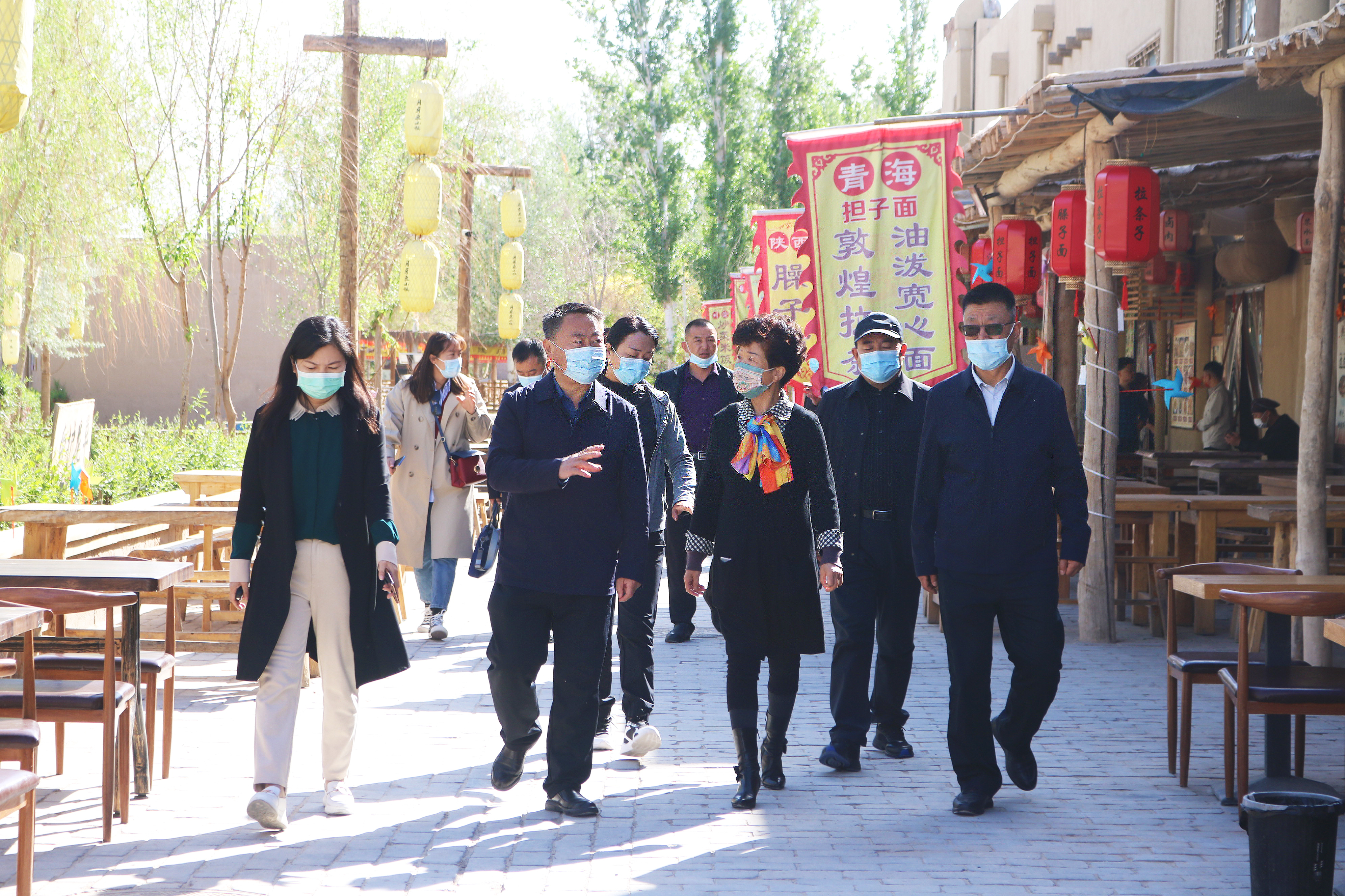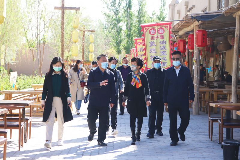 4月27日,山丹縣政府黨組成員、副縣長趙文成帶隊來千年敦煌項目一期月牙泉小鎮(zhèn)民俗文化旅游景區(qū)學習考察文旅產(chǎn)業(yè)發(fā)展方面的先進經(jīng)驗和典型做法。敦煌市文旅局副局長賀雁鴻陪同考察,敦煌千年古城文化發(fā)展有限公司項目總監(jiān)熊秀霞現(xiàn)場接待。