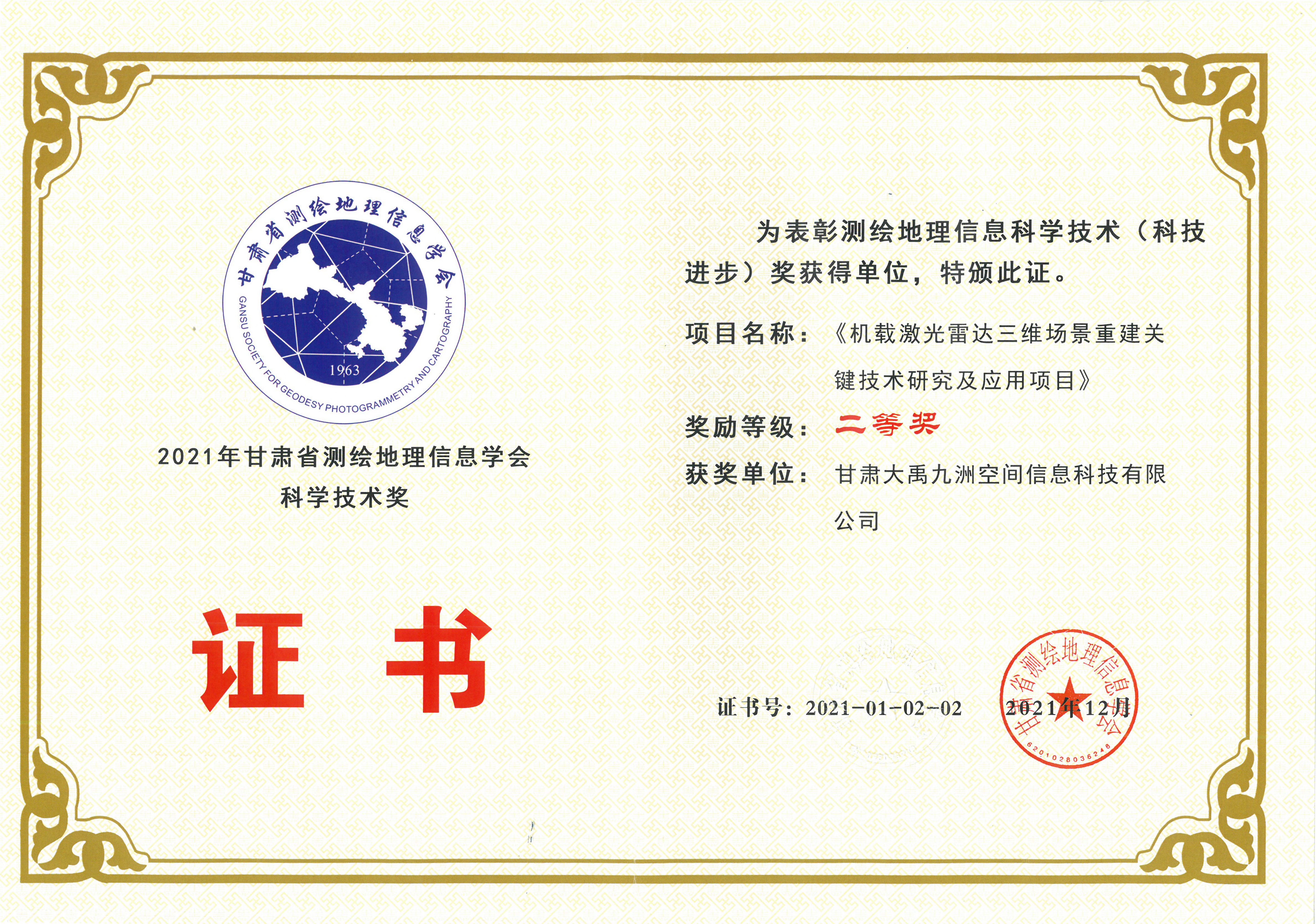 2021年甘肅省測繪地理信息學(xué)會科學(xué)技術(shù)獎二等獎