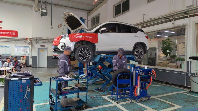 為不影響進(jìn)店客戶的車輛維修,售后技能比武大賽在25日下午5時(shí)開啟。售后技能比武分為前臺(tái)接待環(huán)檢環(huán)節(jié)和車間班組檢修環(huán)節(jié)。前臺(tái)接待顧問沈國(guó)清、王哲、馬芳、竇麗晶、付海清,車間班組蔣永順、許平、王衛(wèi)、劉曉平參加角逐。售后比武環(huán)節(jié)以情景演練方式進(jìn)行,各評(píng)委分別擔(dān)任客戶,從迎接客戶下車、詢問客戶進(jìn)店檢查,到客戶車輛環(huán)檢送進(jìn)車間,上舉升機(jī)測(cè)胎壓卸輪胎檢測(cè)……經(jīng)過4個(gè)小時(shí)的比武演示,最終王哲、沈國(guó)清、馬芳分別獲得一、二、三等獎(jiǎng);車間班組王衛(wèi)、劉曉平獲一等獎(jiǎng),付海青榮獲優(yōu)秀新人獎(jiǎng)。